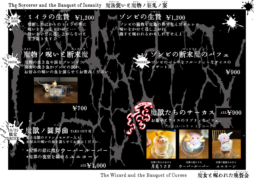 いつもは魔法をかけて、マジカルなパーティーを繰り広げるWizard’s Party!ですが、10月31日のハロウィンの日までは、呪いをかけて、魔物や訪れるお客さまをおもてなし
