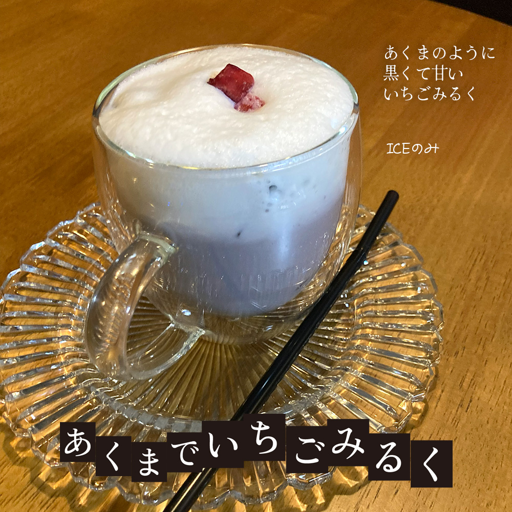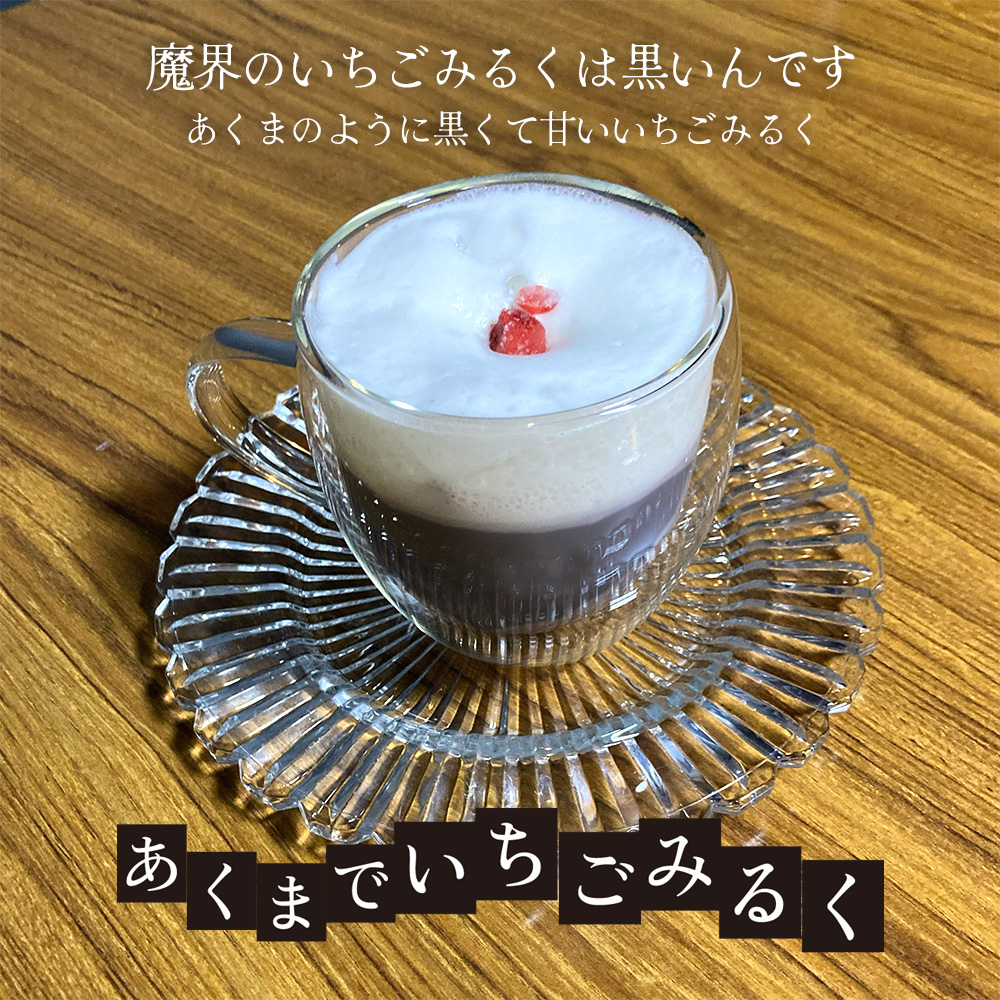 そして、カラフル☆マジカル☆ラテの仲間ではありませんが、ラテと同じくミルクを泡立てたラテがのった、黒いいちごみるく「あくまでいちごみるく」もよろしくお願いします!