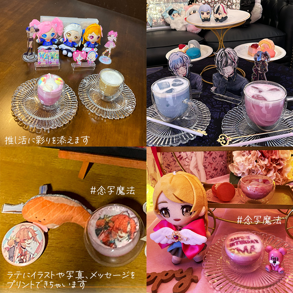 きまぐれトッピング、推し様、推し活へのスペシャル仕様のラテ、ラテの泡にイラストやメッセージ、写真をプリントする念写魔法など、お気軽にお申し付けくださいね♪無料サービスです