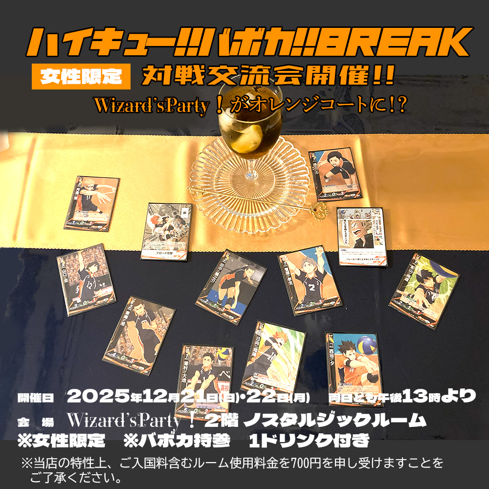 12月<<女性限定>>ハイキュー!!バボカ!!BREAK体験交流会開催!